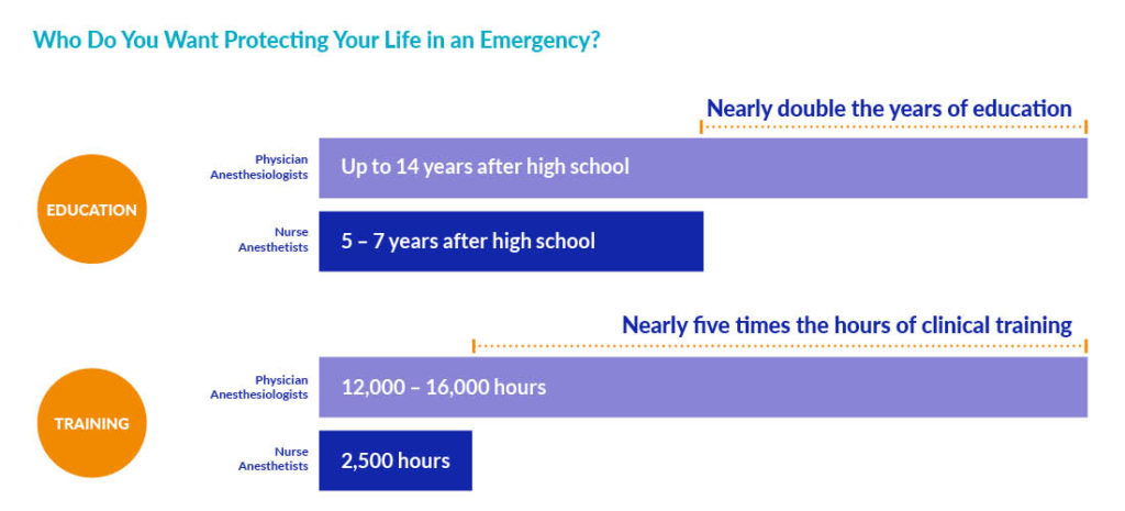 Anesthesiologists’ education and training are unmatched on the Anesthesia Care Team. That’s why they lead the team and take charge of patient safety. You were elected to represent your constituents and fight for their best interests. Make sure your constituents are protected by keeping anesthesiologists involved in all phases of anesthesia care.